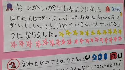 「字がうまくなった」「九九ができるようになった」「なわとびでとぶ回数が増えた」などなど・・・