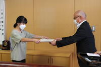 一関市水道局の作品募集、習字の部で特選となった5年生への