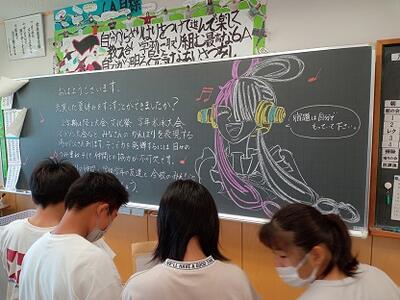 2学期スタートの朝、学級の黒板に担任の先生のメッセージ!