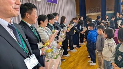 子供たちは、いつもと同じ明るい笑顔で、離任する先生方を送ってくれました。