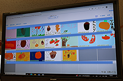 ドングリやカキ、落ち葉やススキなど、思い思いの秋の風物詩をタブレットで描くことができたようです。